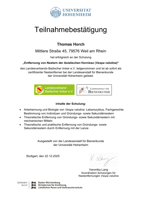 Weitere und ausführliche Informationen können unter dem unten stehenden Links abgerufen werden: Landesverband Badische Imker: