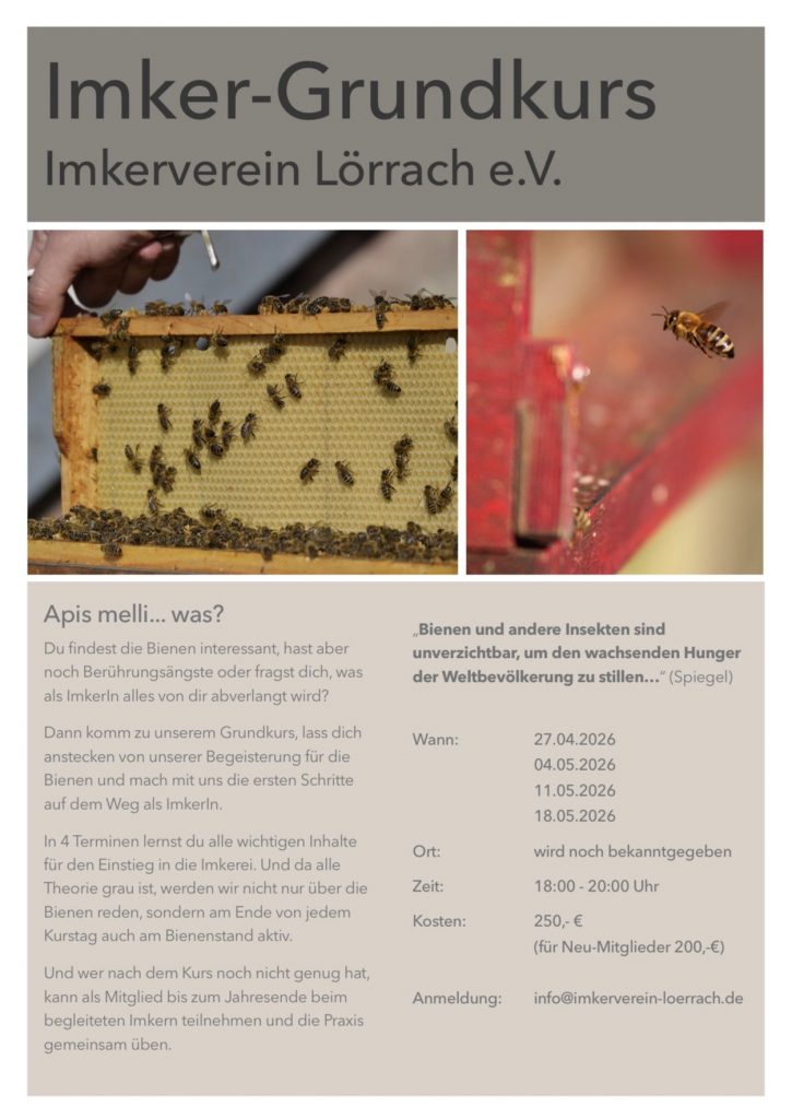 Für weitere Informationen oder direkt zum Anmelden nehmen Sie gerne Kontakt unter info@imkerverein-loerrach.de mit uns auf.